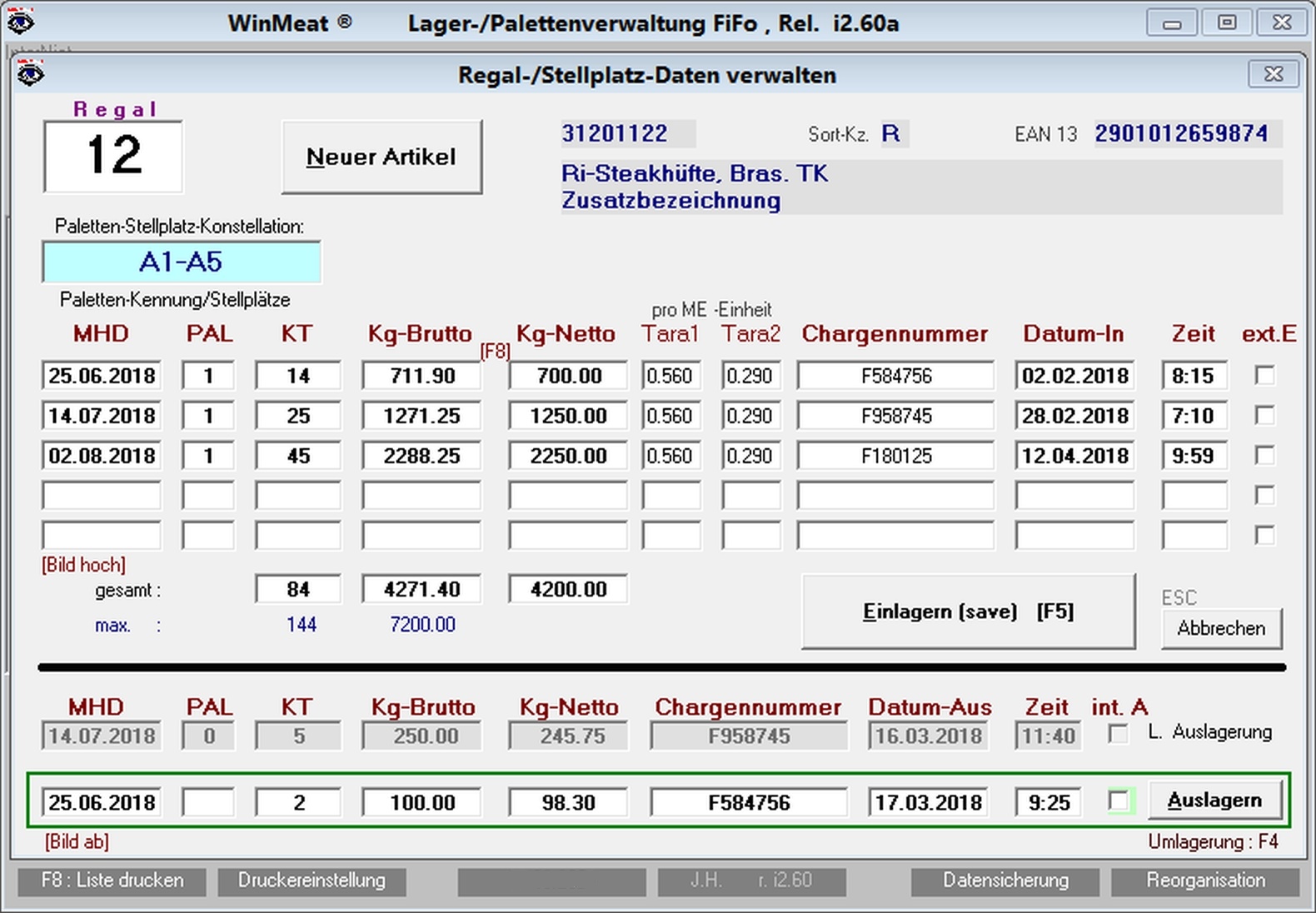 pro Artikel auf Palette eingegeben.