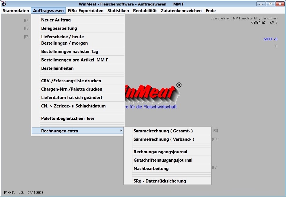Artikelbestandsführung in Verbindung mit WinMeat-Wareneingangsbuch und Produktionsmengenerfassung