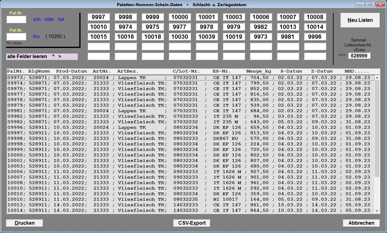 Zurück-Suche über MHD und/oder Chargenkennungen bis zum WinMeat-Wareneingangsbuch nach Lieferant