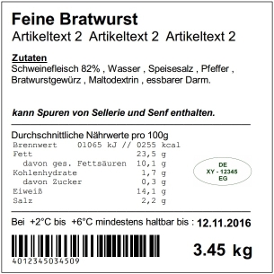 Zutatenkennzeichnung pro Artikel und Legende am Belegende