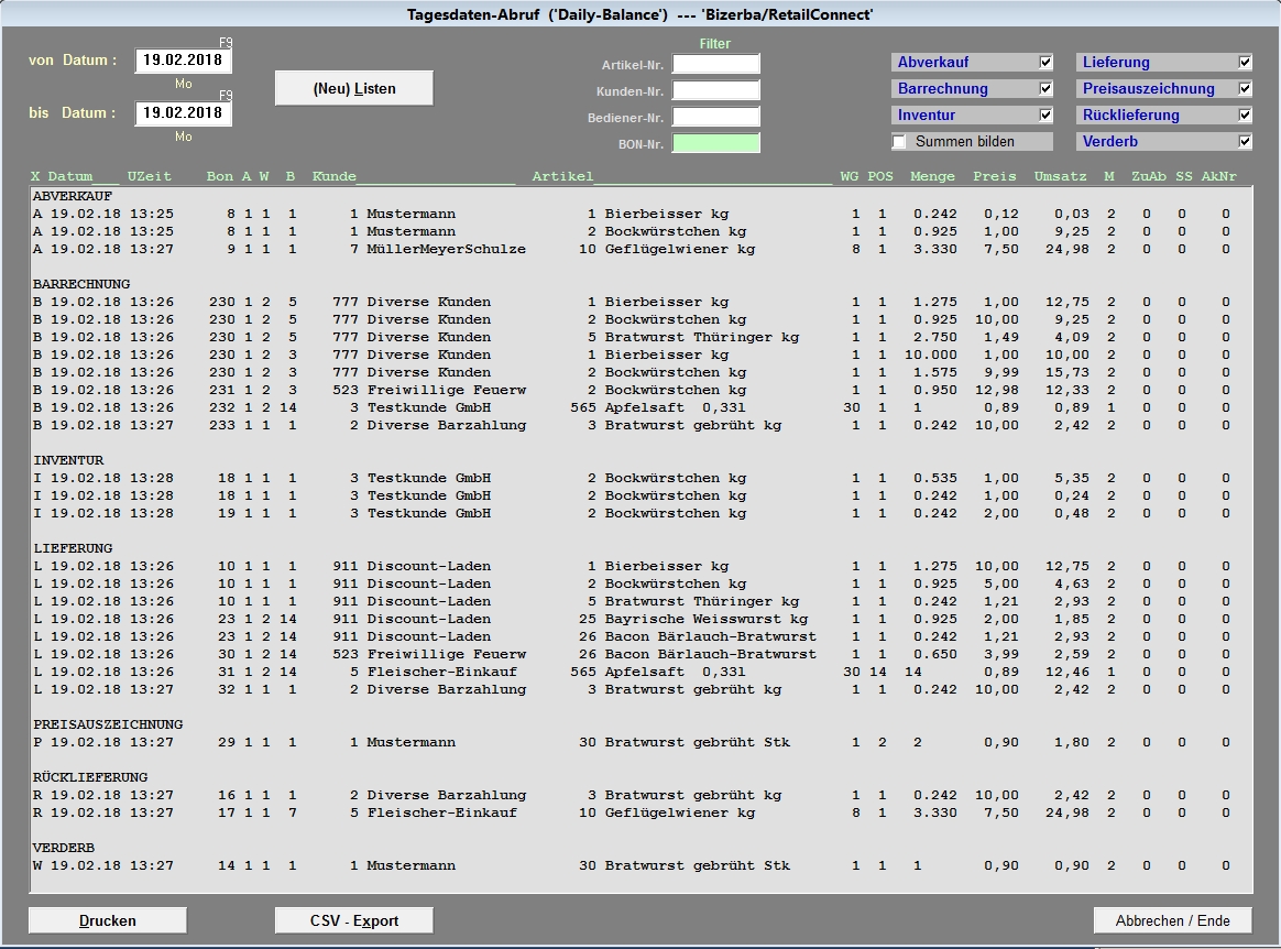 , DFÜ mit Bizerba-CWS-Software)