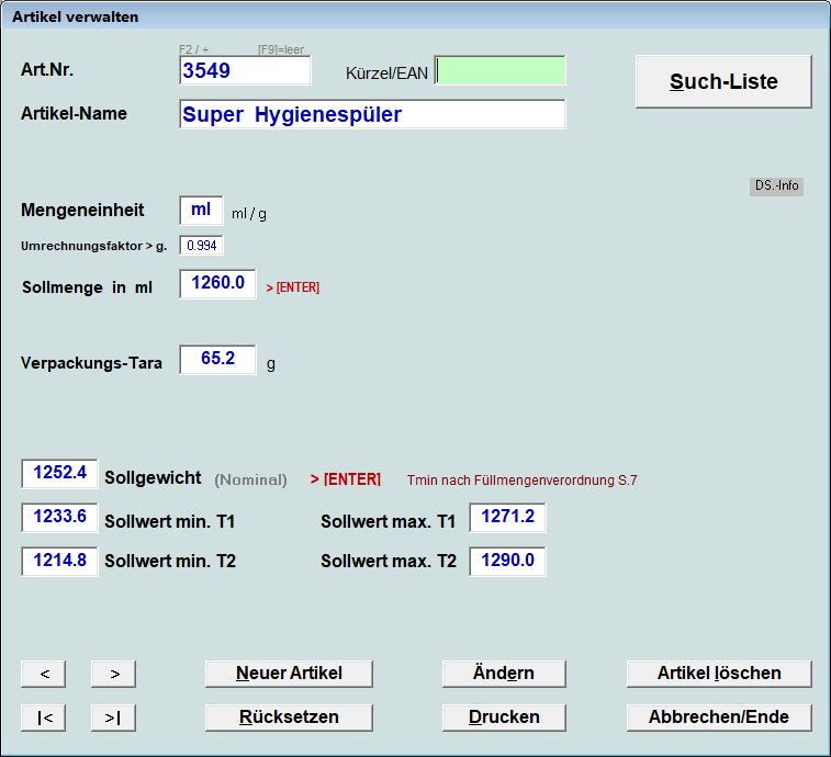 Umrechnungsfaktor fuer Fluessigkeiten : ml <> Gewicht : g