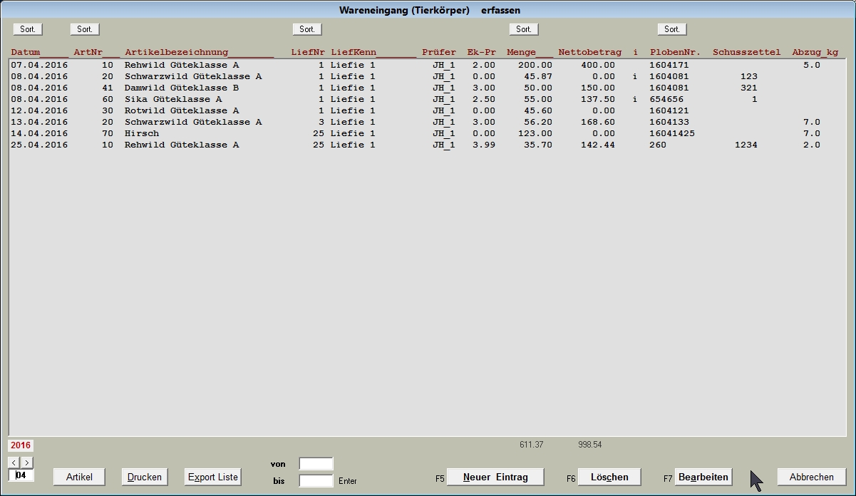 Bestandsdatenverwaltung für eigen produzierte Ware